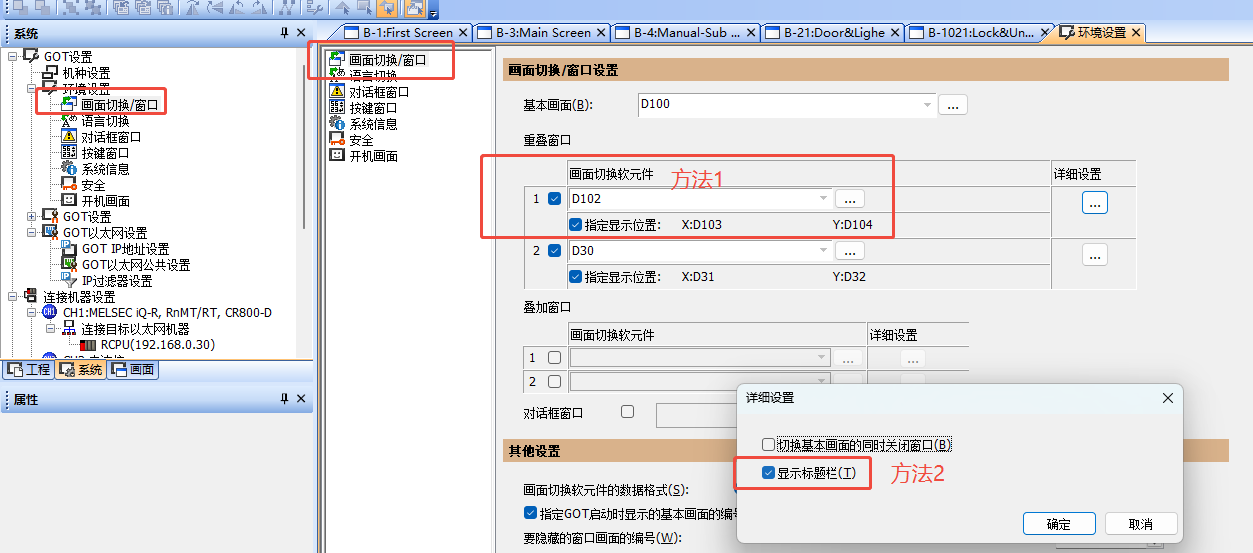 如图,怎么设置才能关掉图中的窗口画面,用的三菱的gt designer3