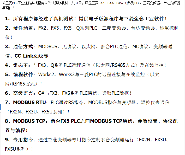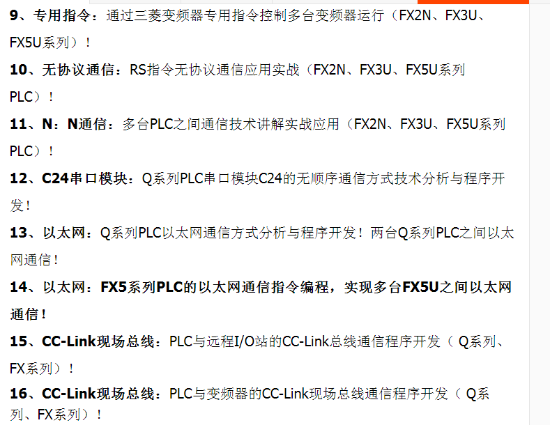 一直都在使用三菱plc做项目,fx和q系列都用到,基本是基础控制和定位这块,难度都不大,但对于通信这块,一直是个难题,想加强这块的知识的复习,大家有没有好的