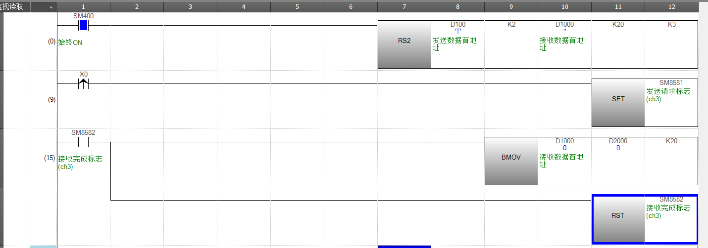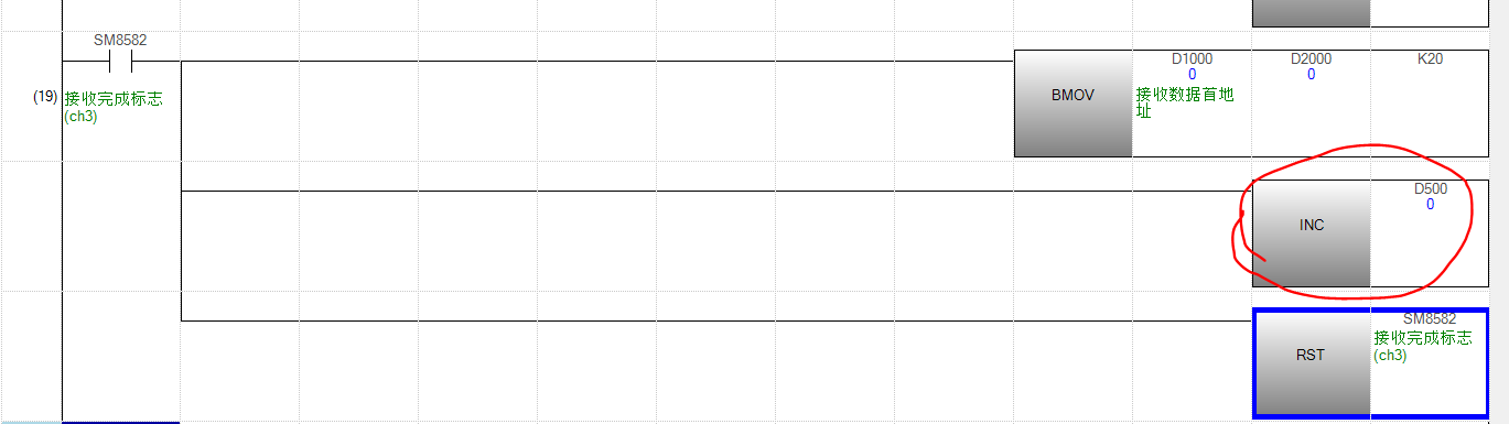 后边在接收完成标志位加了个累加值d500监控,发现d500没有变化,那就说明一直没有接收到完成信号,郁闷啊