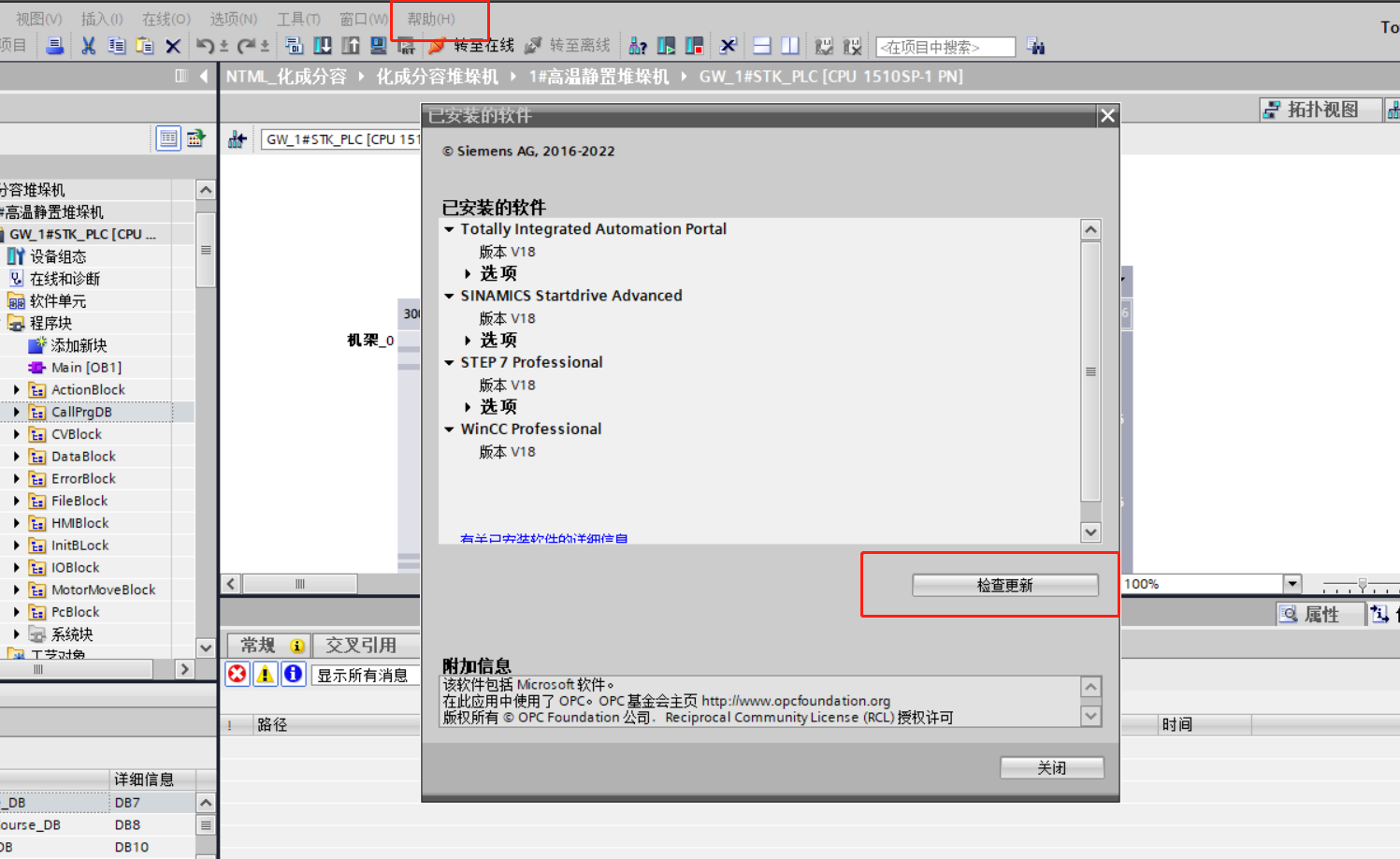 通过博图软件检查:尽管自动更新功能可能不直接可用,用户仍可以尝试在博图软件的“帮助”菜单中单击“已安装的软件”,然后单击“检查更新”来查看是否有可用的更新23。