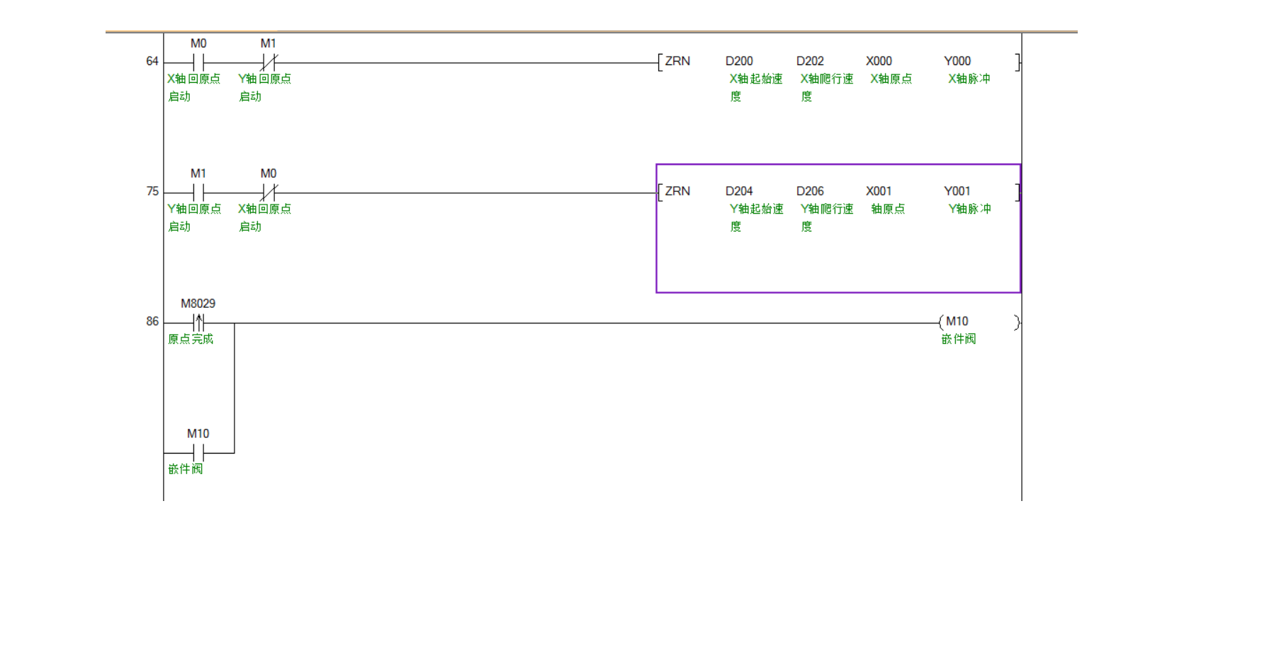 “m8029必须跟回原点指令在一条母线下面“,没有这一说法。