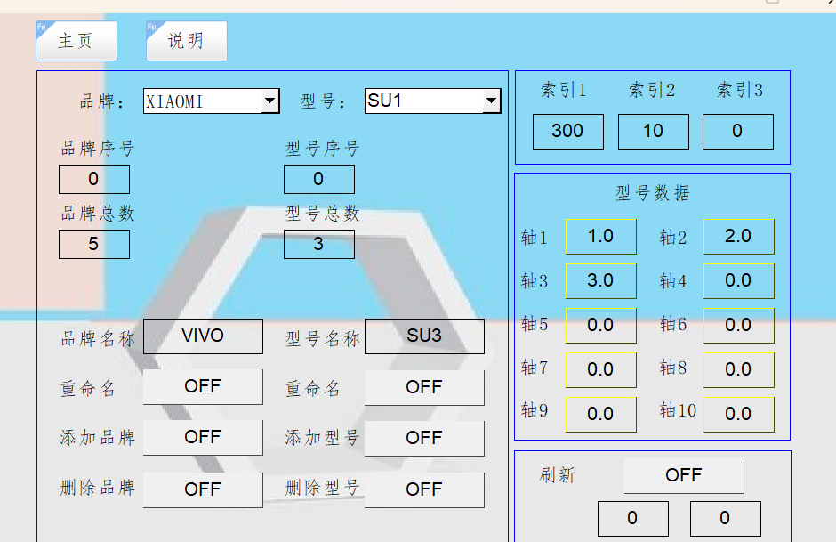 因为寄存器的限制,目前只做了支持20多个品牌,每个品牌可以添加20多个型号 ,每个型号有10个数据存储区