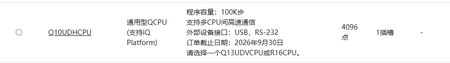 引用引用第1楼快乐小学生于2025-05-13 10:24发表的 :不建议cpu使用q10udh 以太网模块替换:如果原cpu的网口使用了部分通讯的话,你替换程序要做相应的修改,主要以太网模块qj71e71-100和本体网口部分功能有差异;还有就是两个plc的软元件地址规划也有部分差异,原程序用到了差异部分的话,你处理起来会比较麻烦,。建议使用q13udv替换。