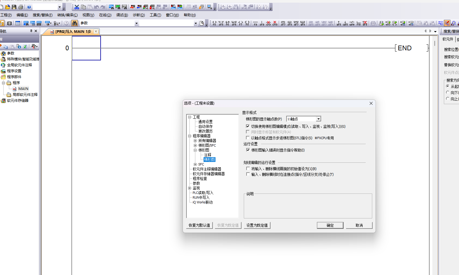 工具-选项-程序编辑器-梯形图