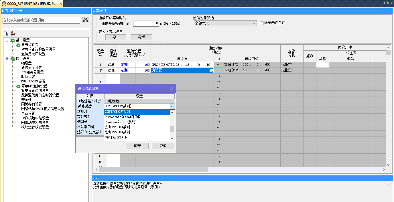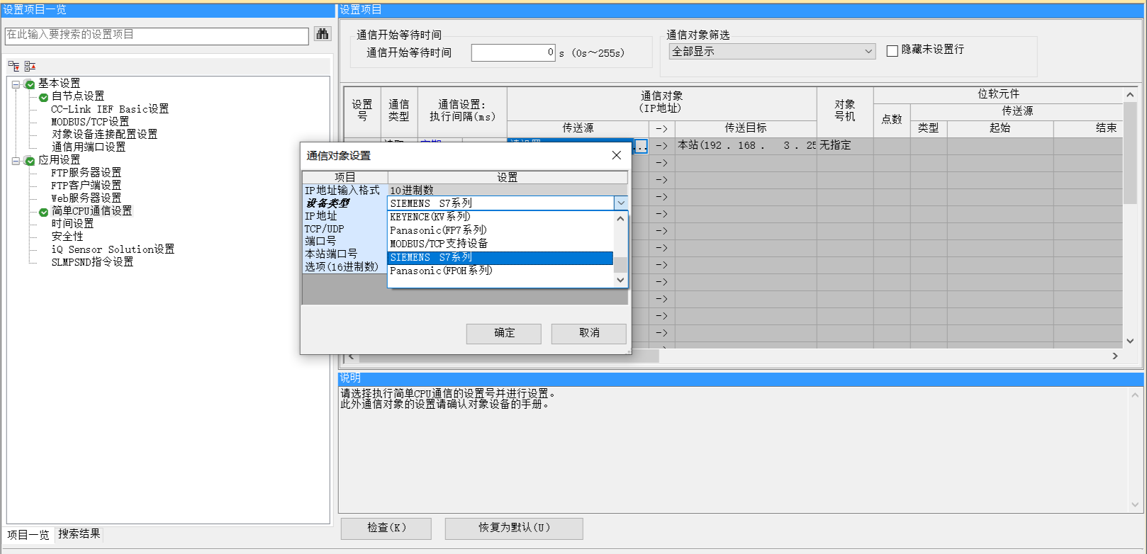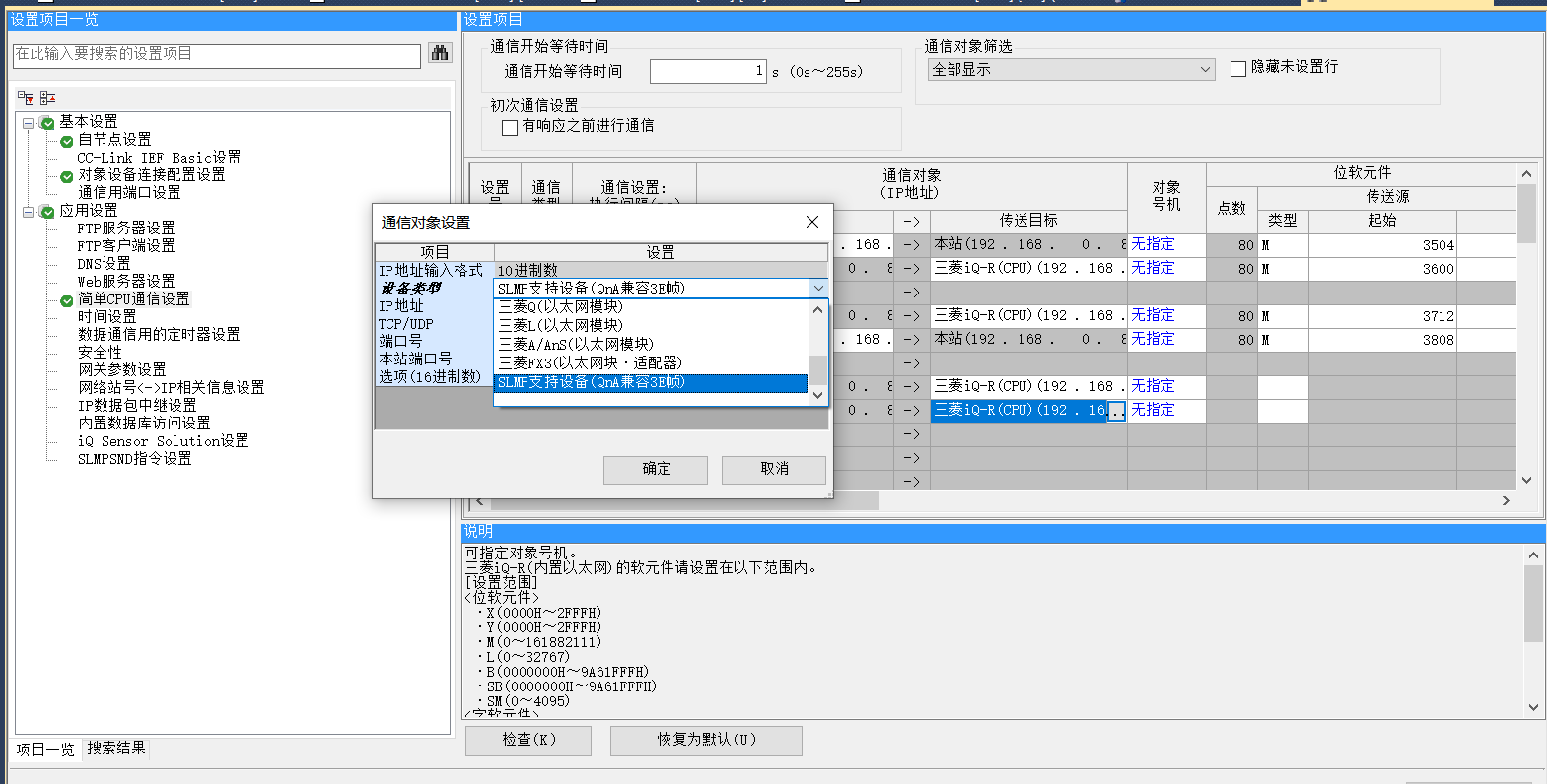 然后上图是r系列的简单cpu通信设置,只能选择三菱的plc进行通信。。。