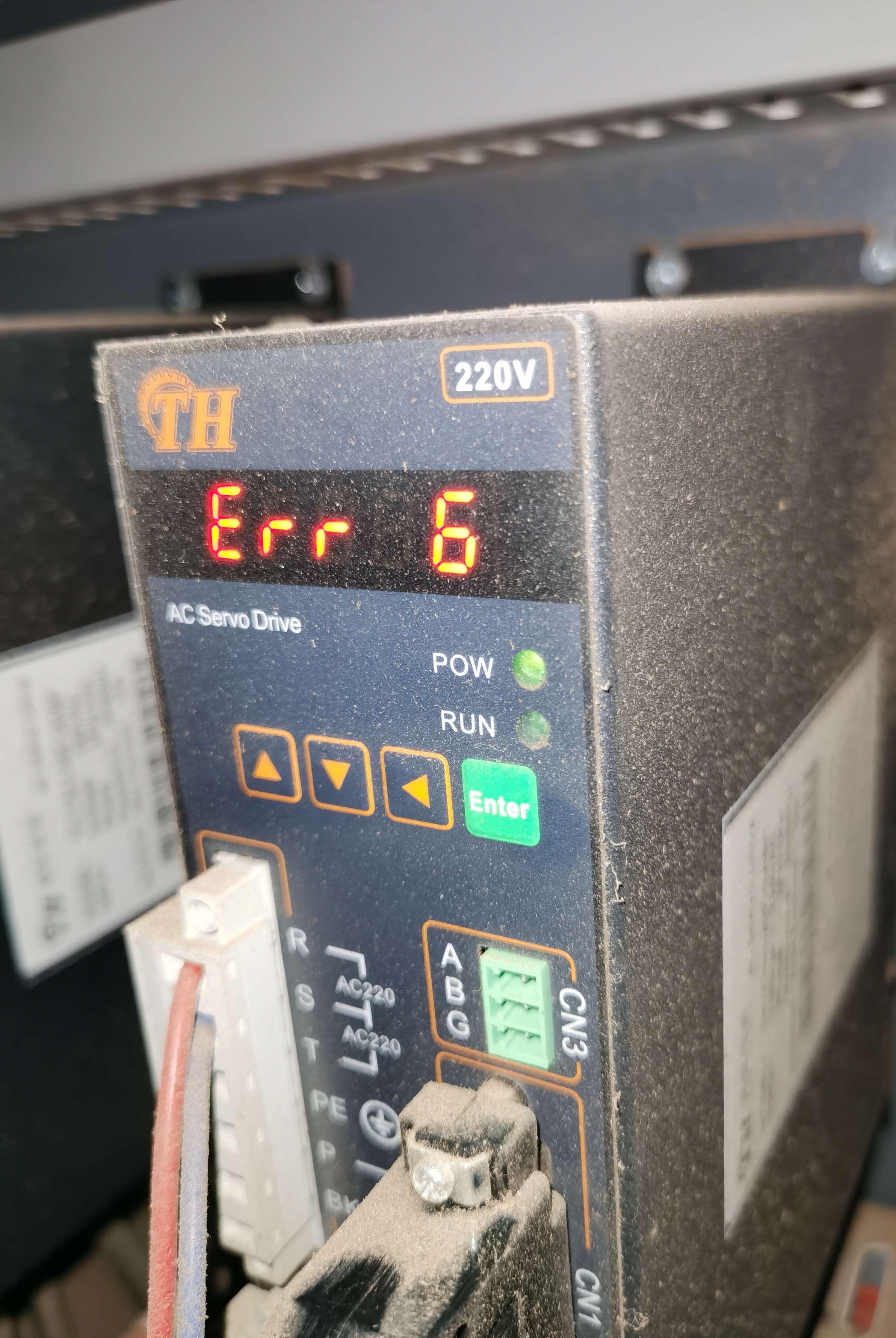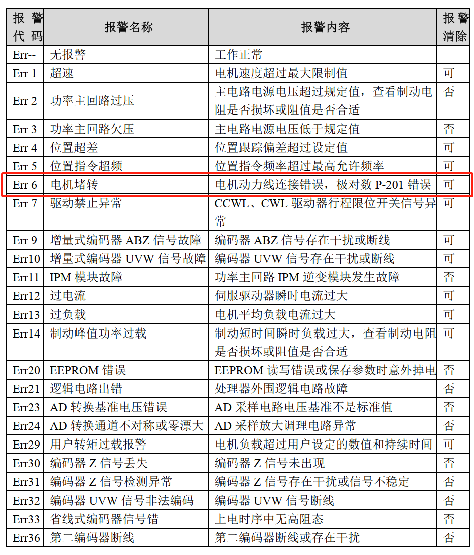 你这个驱动器具体哪个型号的,我找到个tx3系列的驱动器的说明书,通航的,err6是堵转了,还有检查电机线路