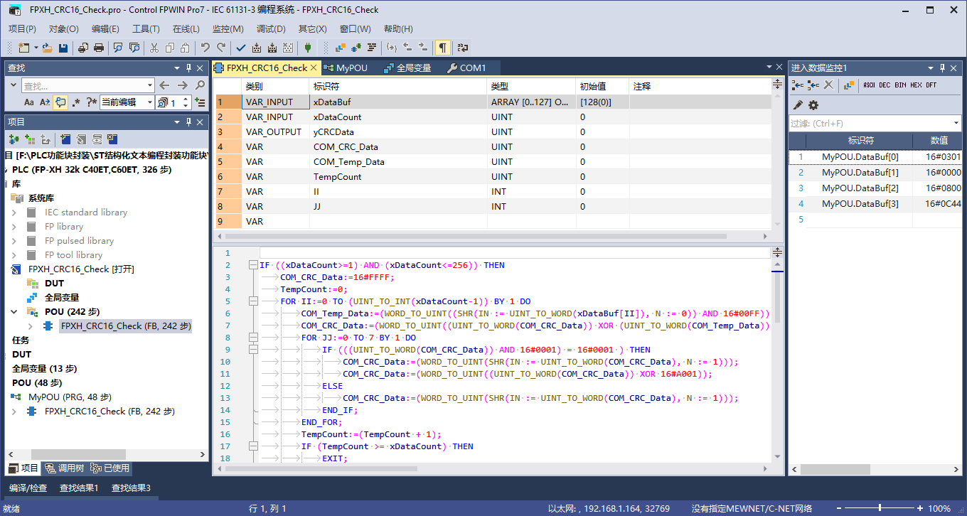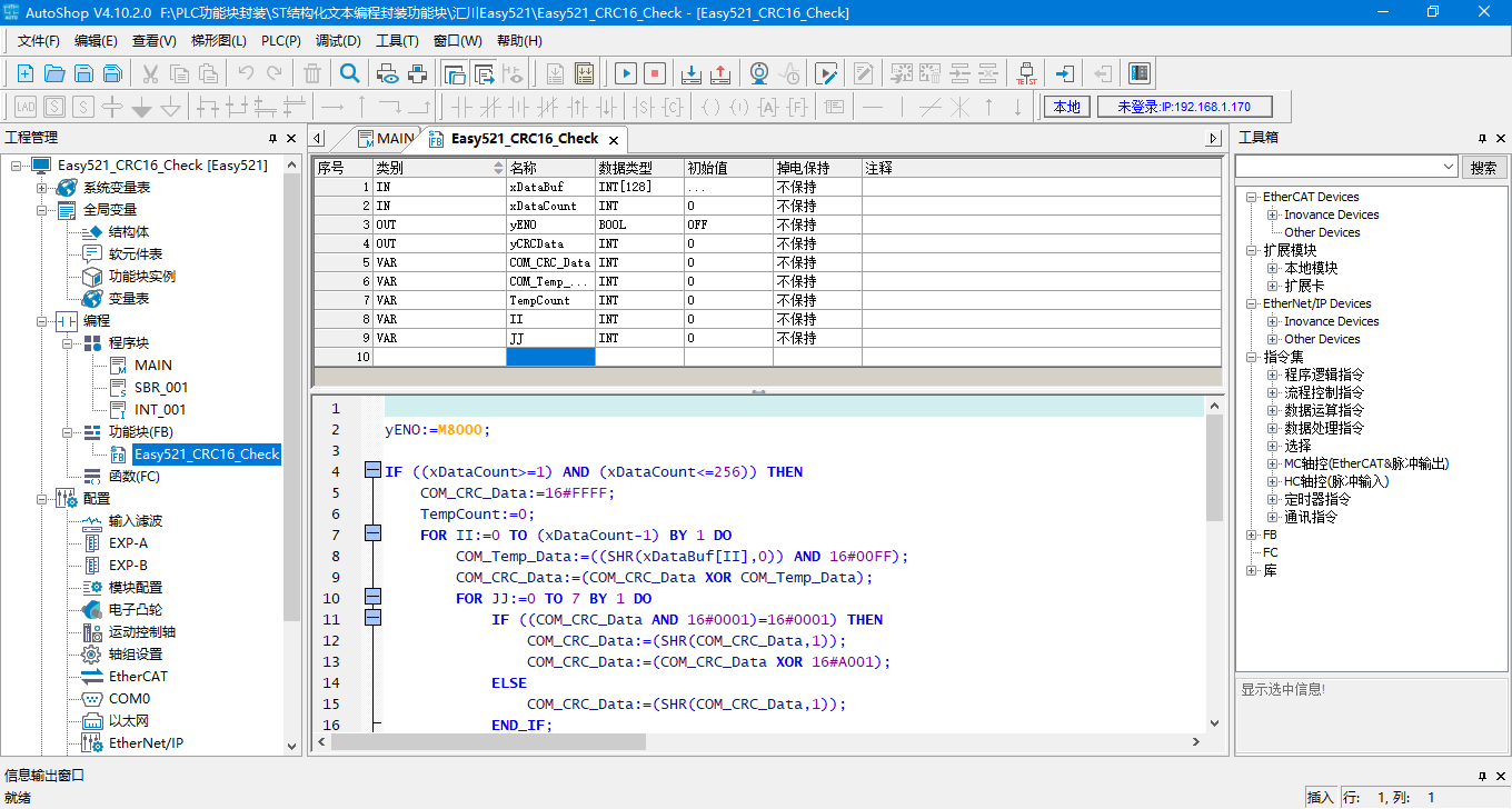 8种plc结构化文本编程封装crc16校验功能块 -凯发网址