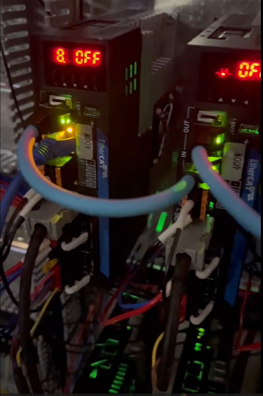 你的伺服的网口是是手拉手接法吗?就是前面伺服进入后,再出来到下一个伺服