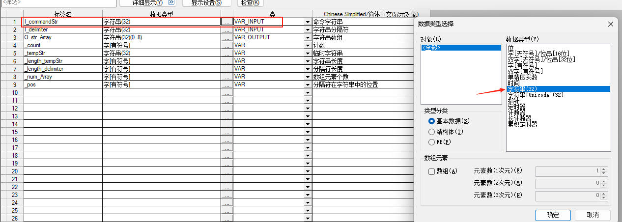 我定义一个寄存器d2300 rs接收到的数据bmov到d2300 接收到的是 例如:ma1,10,1000.0,10,e,0 我只能接收最大17个字符 32位 后面的e和0就存不进去了,,大神 有没有什么办法可以处理的 数组是怎么用的,我可以用么 我这个fb里面
