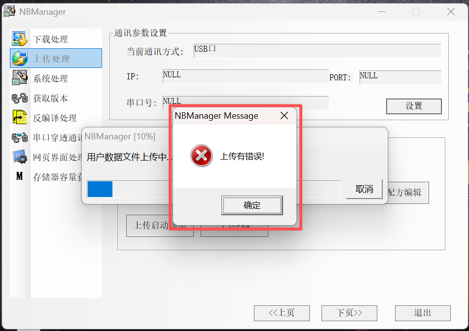 前同事离职了,旧设备需要维护,上传密码应该是对的,但是上传过程中报错(如图),请教是什么原因呢?是软件版本还是固件版本问题吗?还是设置了禁止上传?第一次用欧姆龙的触摸屏,确实不太懂。