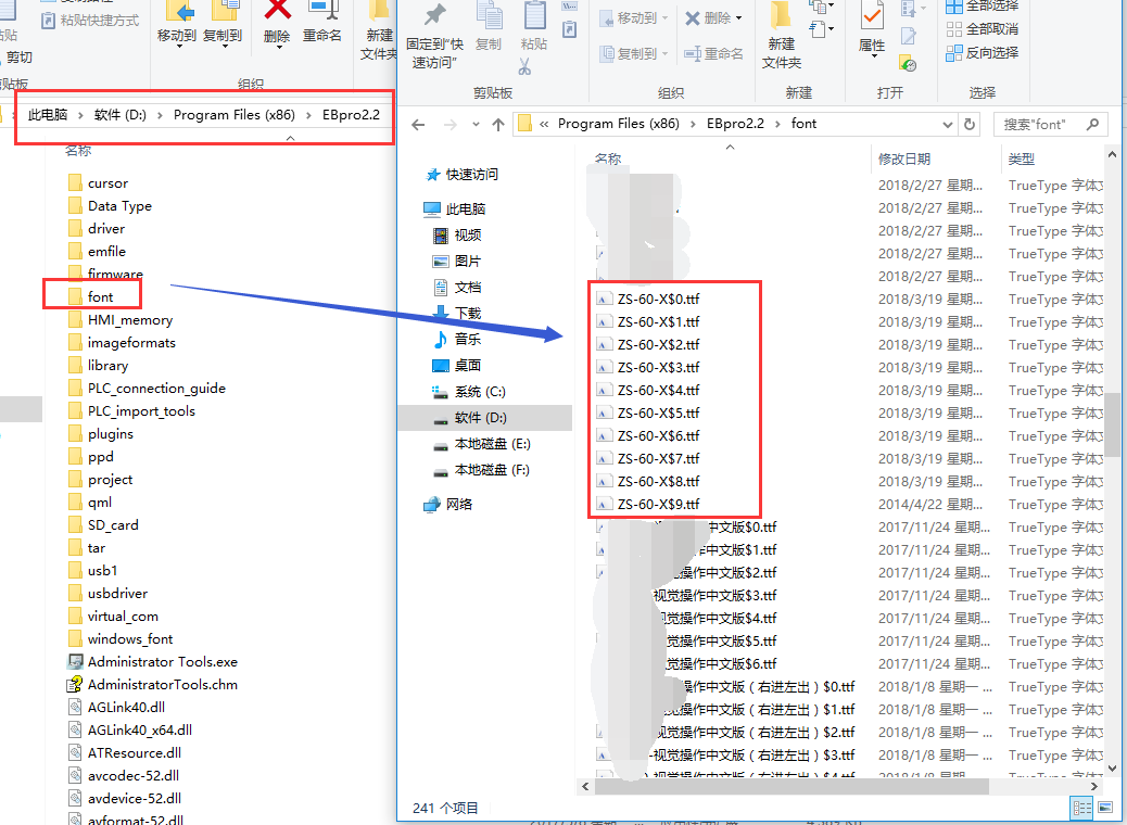 在你自己电脑上编译时候会在编译软件的安装目录下面创建字体库,位置如图所示,注意名字和你的编译后的名字是一样的,这个很关键!