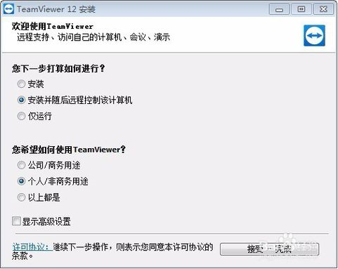 安装的时候是否以管理员运行有关,不深究。我给大家推荐一个软件:teamviewer,记住安