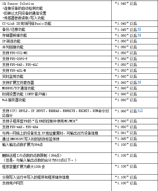 fx5u陆续增加了一些功能,这些功能对固件有所要求,比如: