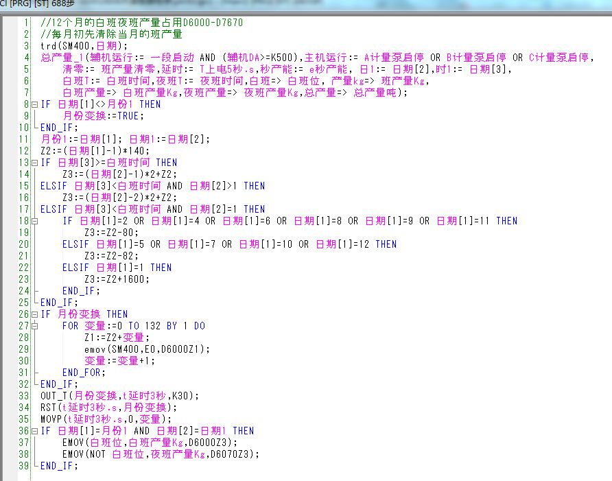 三菱st写的统计今天和昨天每小时产量,请多多指教!!!!!!!!!!!!!!