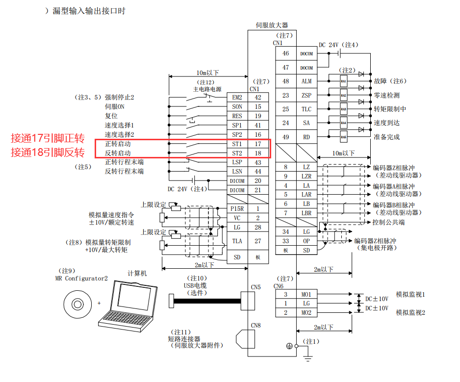 请问三菱mr-j4-a在速度模式下更改旋转方向要怎样设置,今天设置了几个参数都不能改变旋转方向,原来pd07(cn1-17管脚)参数设置是4的(pc)后来更改为7(st1)或8(st2)都不行,请问还有需要更改其他参数吗