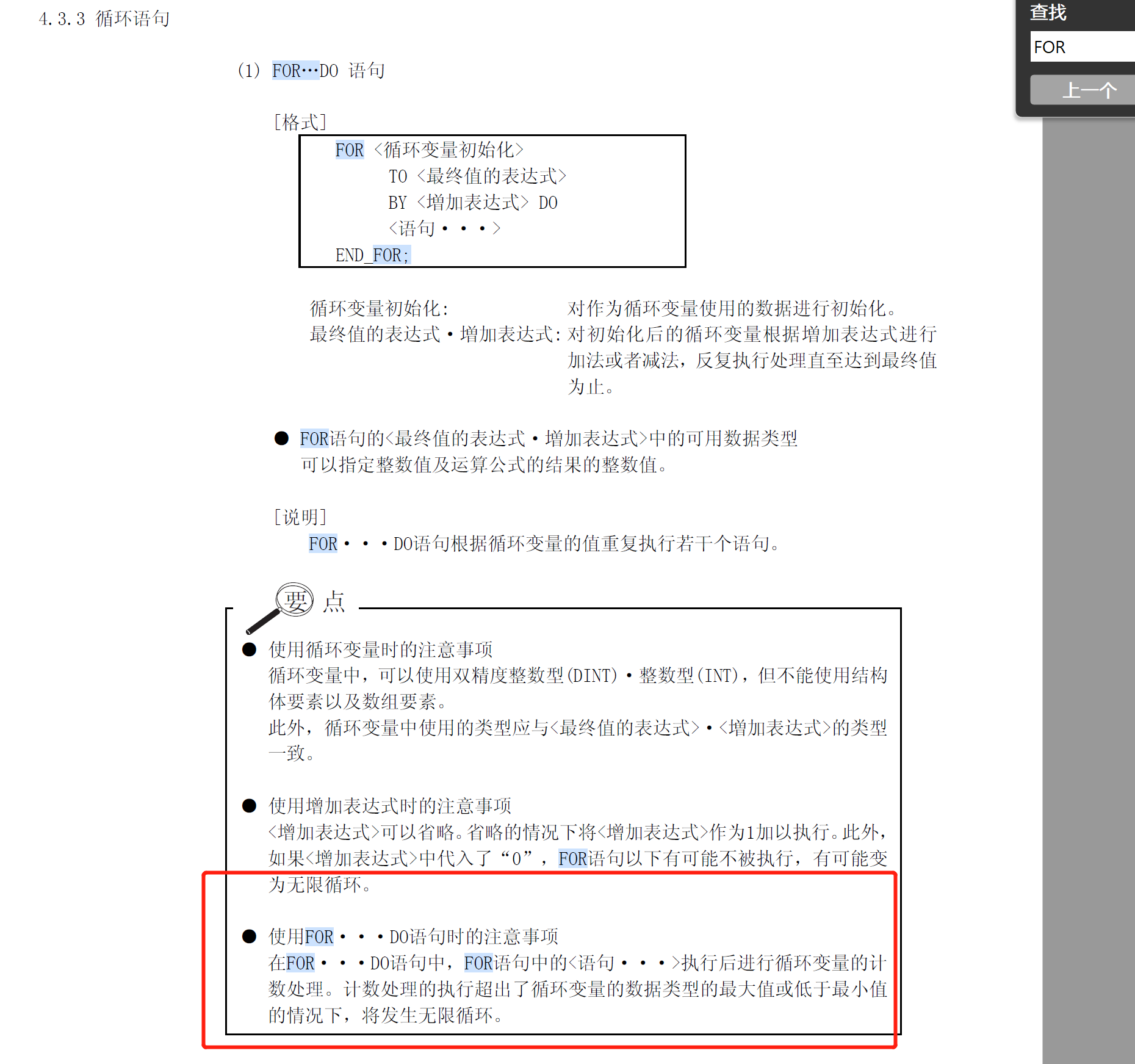 引用引用楼主wp19950801于2021-01-20 21:07发表的 三菱st中for循环的疑惑,求解!! :if m0 then for num:=0 to 99 by1 d0inc(sm400,d400);if num=6 then inc (sm400,d500);.......