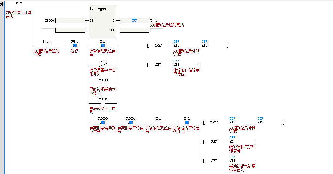 引用引用第1楼longry于2023-09-09 16:20发表的 :没看出来有问题啊,x11有信号set m19, x11没信号 zrst m12 m13,set m14。 然后你程序其他地方把m14 和m19复位了吧?