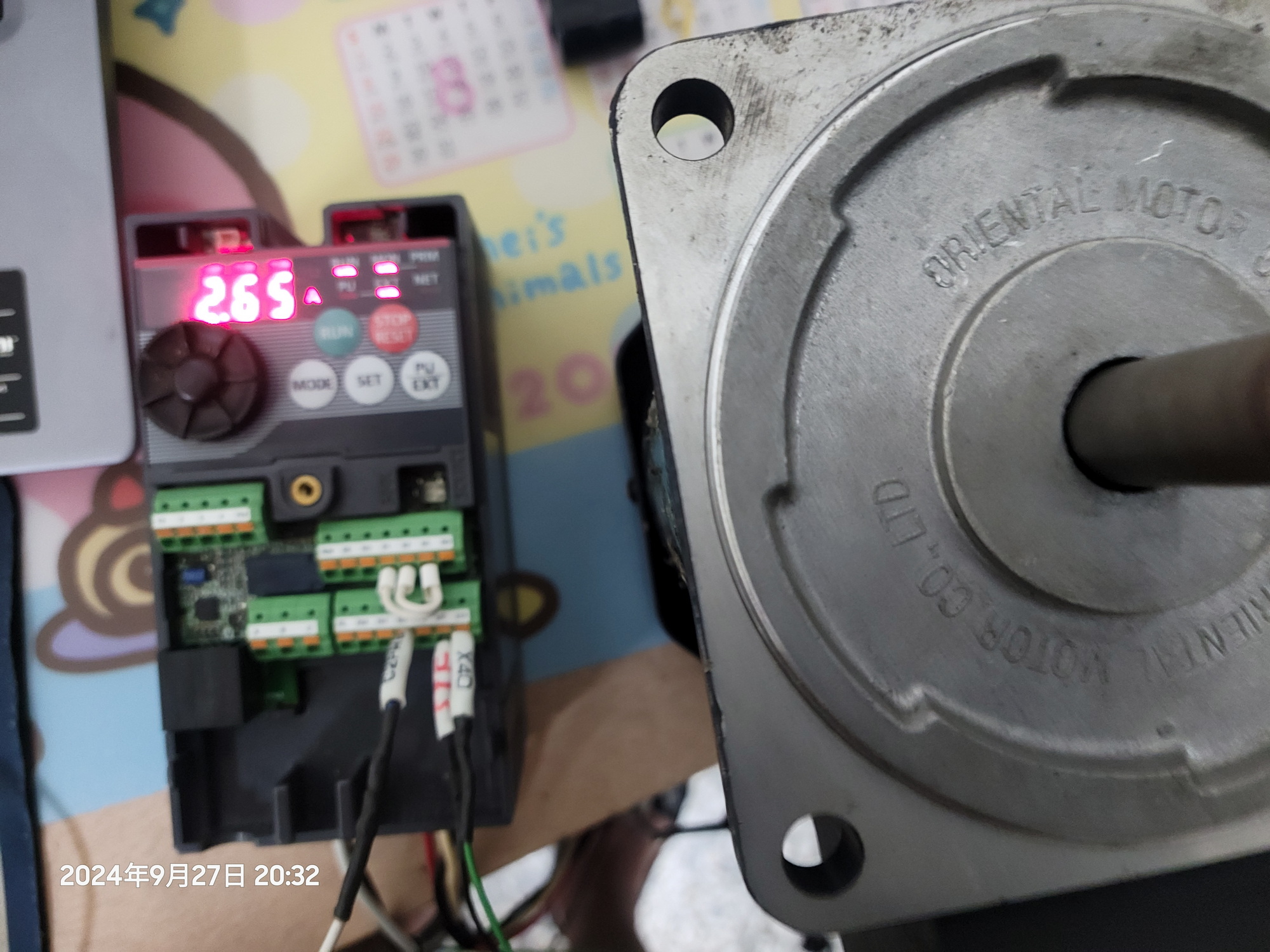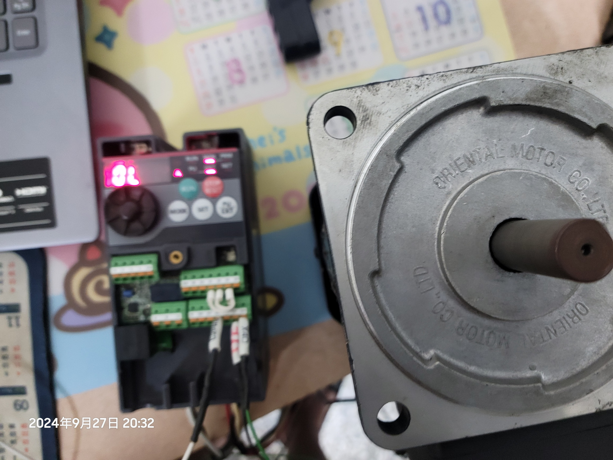 我的變頻器是fr-720s-0.2k 電機200wr 電機絕對正常 電錶量測輸出一下斷電一下有電 但斷電時看不出來
