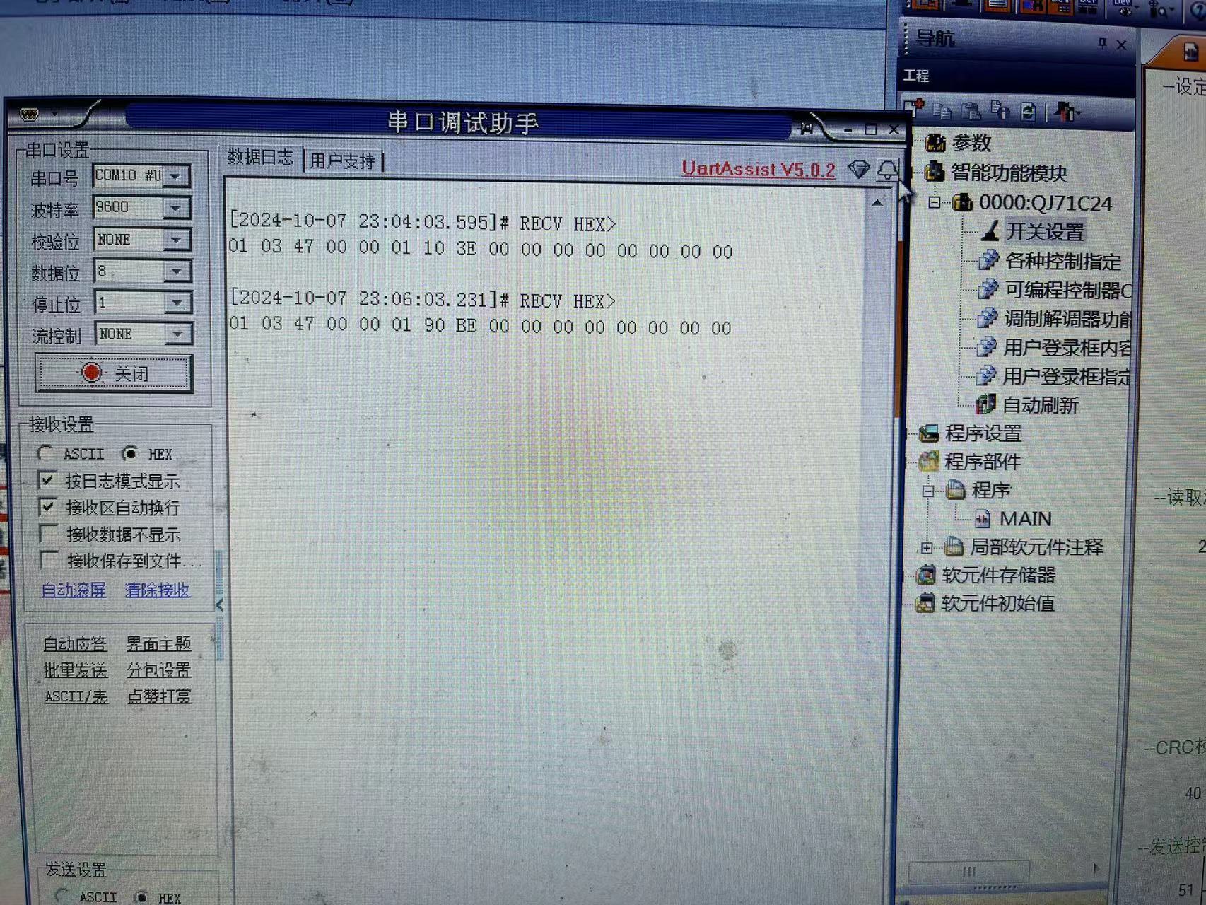 请教各位老师一个问题,在测试qj71c24与电脑通讯时,由于采用2线制方式,每次都会多收到一串数据,qj71c24模块又不能设定返回禁止,请问要如何处理呢?