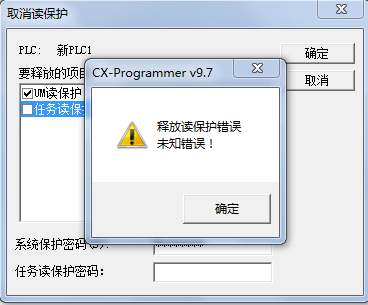 2个cp1h需用工具解密,结果2个plc 的um密码和任务密码一样的。分别对2个plc - 保护 - 释放密码,其中一个释放密码显示成功,可上载程序;另一个显示释放读保护错误,无法继续上载程序。用解密工具试第二次得到的um密码、任务密码与另一台是一样一样的,搞不懂是什么原因?
